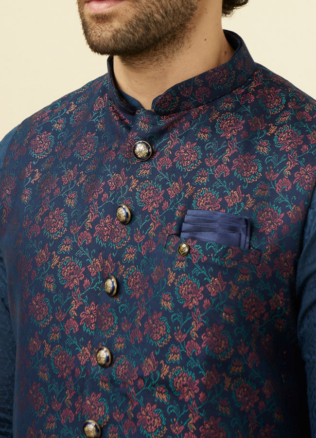 Buy Navy Blue Floral Patterned Half Jacket Online in UAE Manyavar Nehru Jacket for Men Very well made.